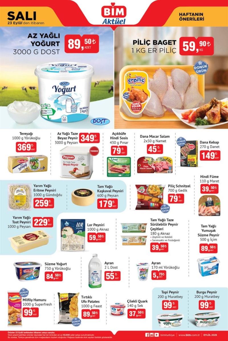 Kataloğa göre öne çıkan ürünler arasında Nuga Kakaolu Fındık Kreması 650 gram 175 TL, Demlik Süzen Poşet Çay Ahmad Tea 89 TL ve Az Yağlı Yoğurt 89,50 TL bulunuyor. Et ürünlerinde ise Piliç Baget 1 KG Er Piliç 59,90 TLfiyatıyla satışta olacak.