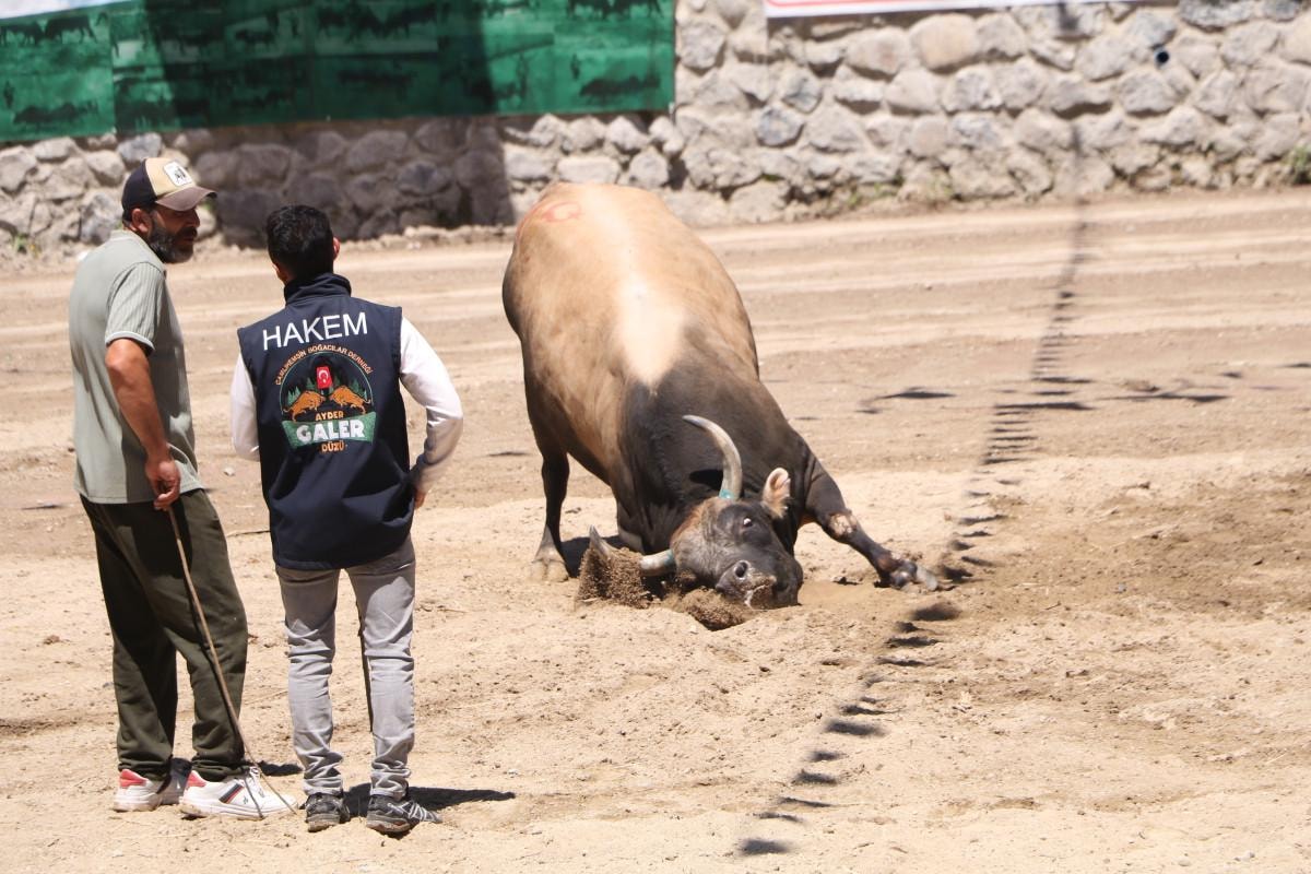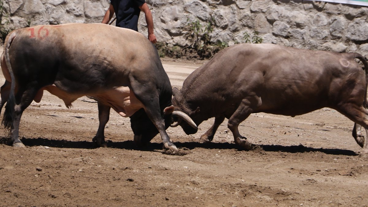 Rize Çamlıhemşin'in Ayder Yaylası Galer Düzü'nde bulunan arenada baş, başaltı, küçük orta ve büyük orta ve ayak kategorisi olmak üzere 5 kategoride yarışan 70 boğa kıran kırana mücadele etti.