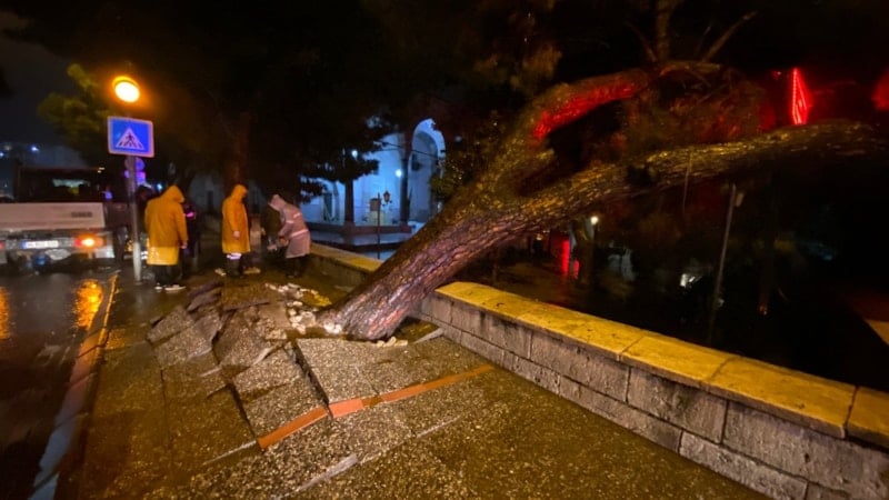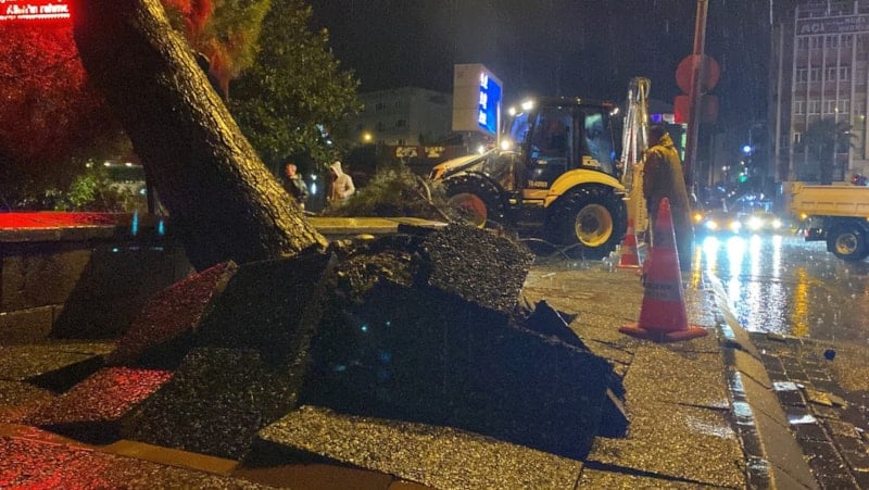 Ağacın devrildiğini gören vatandaşlar durumu 112 Acil Çağrı Merkezi'ne bildirdi. İhbar üzerine hızla olay yerine gelen polis ekipleri çevre güvenliği aldı.