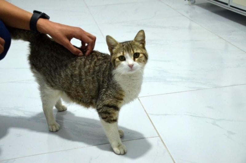 Adnan Menderes Bulvarı üzerinde hizmet veren özel klinikte görevli veteriner hekimler Ömer ve Dilara Çınar çifti, kapılarının önünde gezinen kediyi fark edince önce aç olabileceğini düşündü. Ona mama vermeye çalıştılar ama kedi mamaya dokunmadı. Ardından yaş mama teklif edildi, fakat kedi sadece veterinere sokulmakla yetindi.