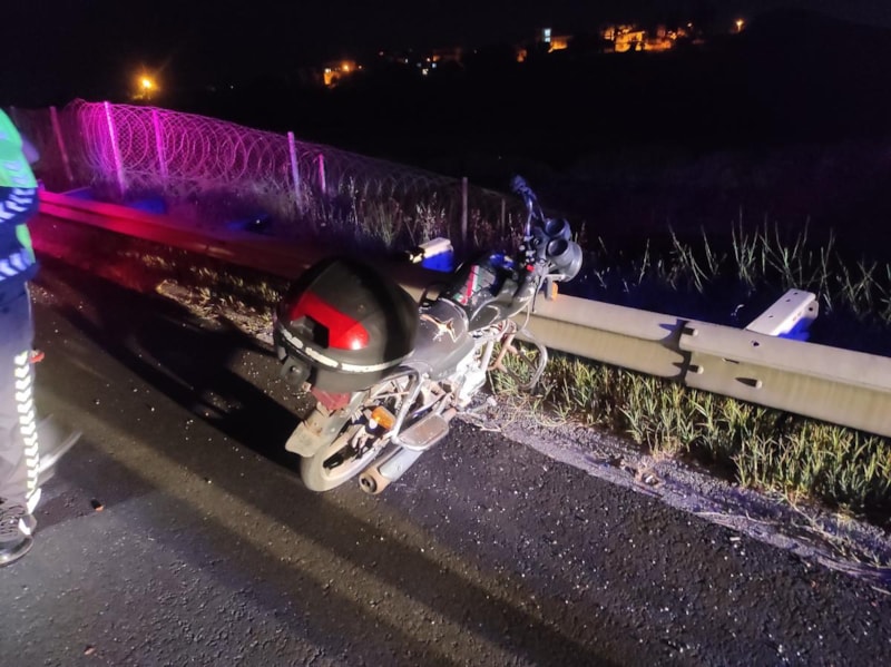 Aydın'da Efeler ilçesi Muğla Bulvarı üzerindeki otoban bağlantı yolunda bölgede devriye gezen trafik ekipleri, bariyerlere sıkışmış şekilde bir motosiklet olduğunu fark etti.