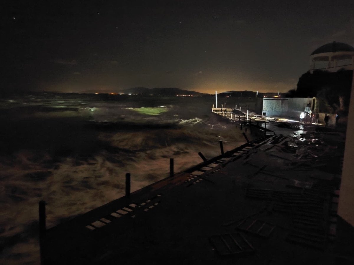 Fırtına sırasında oluşan dalgalar sonrasında iskeleden denize düşen 3 işçi uzun süre denizde mahsur kaldı. Yapılan ihbar üzerine bölgeye sağlık, itfaiye, polis ve sahil güvenlik ekipleri sevk edildi.