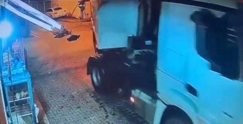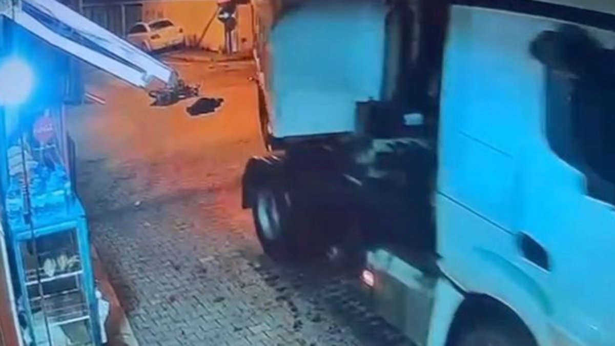 Görüntülerde kamyonun sola dönüş yaptığı sırada Aydoğdu'nun motosikletiyle altına girdiği anlar yer aldı.