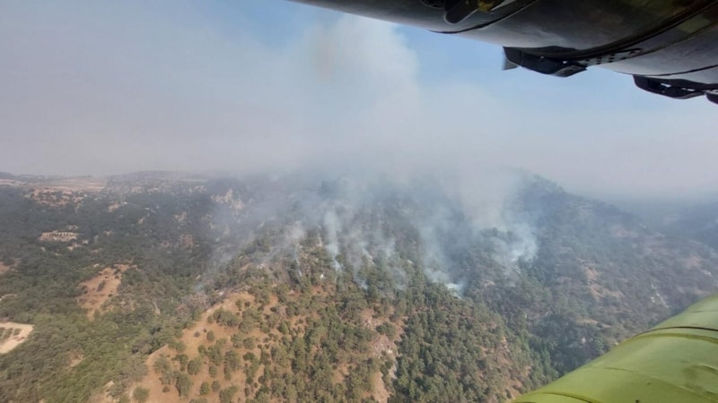 Yangına ekiplerin havadan ve karadan müdahalesi sürüyor.