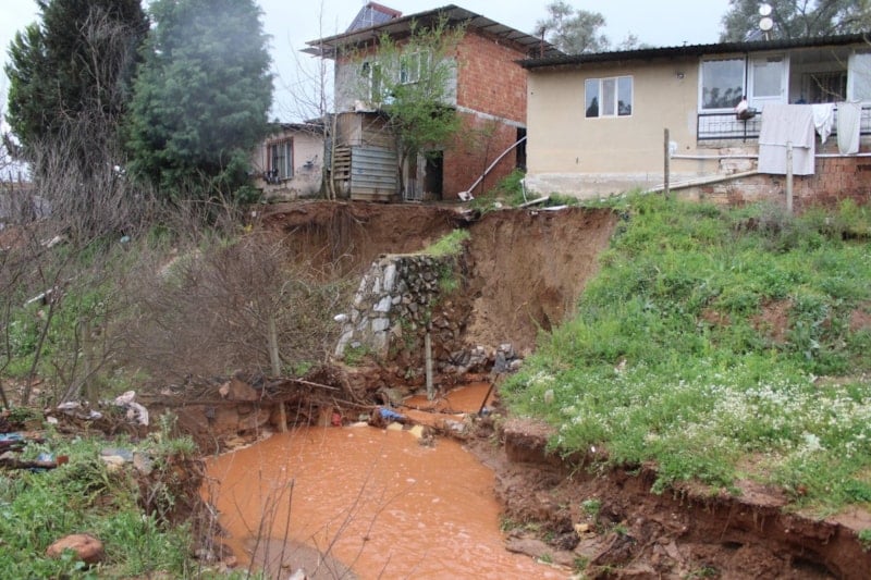Aydın’ın Efeler ilçesinde yoğun yağışın etkisiyle Çakırlar Çayı taştı, dere kenarındaki toprak erozyona uğradı. Evlerin yakınında yıkılma riski oluşması üzerine bir ev tedbir amaçlı tahliye edildi.