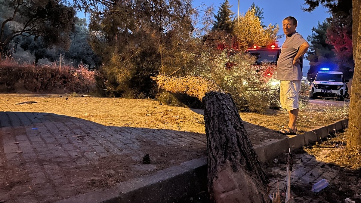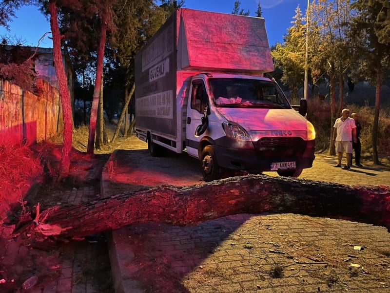 Aydın'da Efeler ilçesinde saat 20.30 sıralarında Kemer Mahallesi Zeytinlik Caddesi üzerinde, Batman’dan ev taşımak için Aydın’a gelen Azad Demir’in idaresindeki 72 AAN 485 plakalı kamyonetin üzerine seyir halindeyken çam ağacı devrildi.