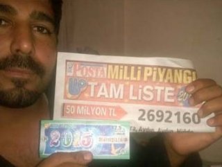 Milli Piyango İdaresi’nin yılbaşı özel çekilişinde çeyrek bilete çıkan 50 milyon liralık büyük ikramiyenin ikisi Aydın’a isabet etti. Talihlilerin ortaya çıkmaması üzerine Ali Çakır isimli bir vatandaş, fotomontajla hazırladığı bileti “İkramiye bana çıktı” diyerek sosyal medya üzerinden paylaştı. Çakır paylaşıma, "İyi günlerde harcarız umarım" notunu düştü.