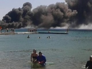 Teknenin yanma anı denize giren vatandaşlar tarafından saniye saniye görüntülendi. Tekne yangını sırasında plajda bulananlar büyük bir panik yaşandı.