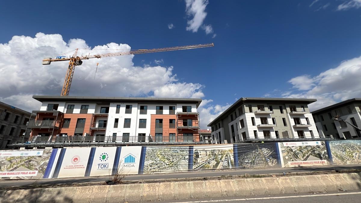 Azerbaycan tarafından yapılan Azerbaycan Mahallesi'nde, kaba inşaatların tamamlandığı kaydedildi.