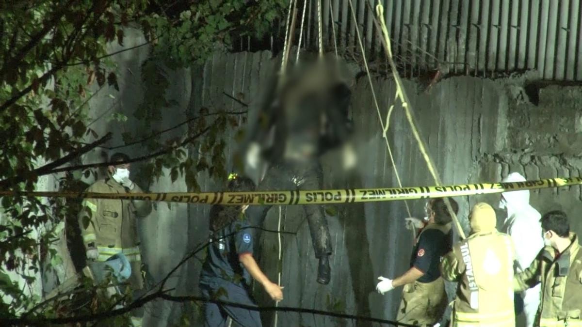 İtfaiye ekiplerinin yardımıyla ceset bulunduğu yerden çıkarıldı.
