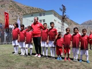 Gençlik ve Spor Bakanı Osman Aşkın Bak, Şırnak'ın Ayvalık köyünde buldukları Türk bayrağını kendi imkanlarıyla diktikleri direğe asarak dalgalandıran çocuklarla futbol maçı yaptı.