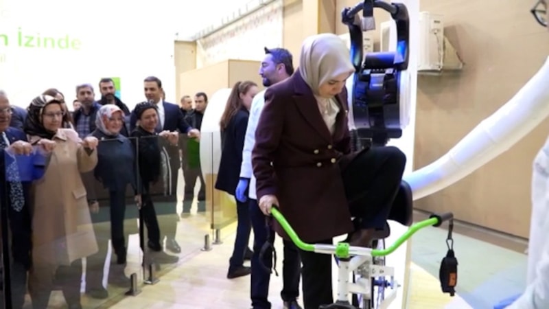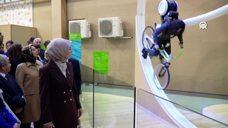 Aile ve Sosyal Hizmetler Bakanı Mahinur Özdemir Göktaş, G Kuvveti Bisikleti'nde 360 derece döndü ve astronotların yaşadığı G kuvvetini tecrübe etti.