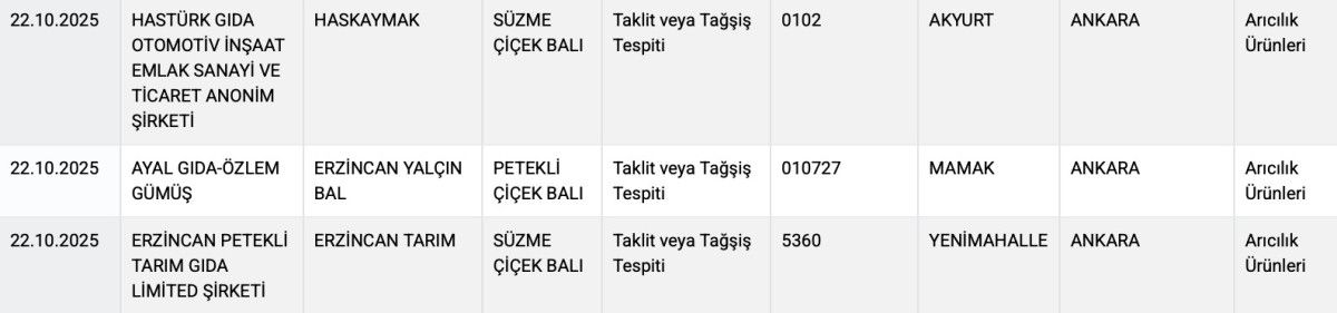 - Tarım ve Orman Bakanlığı, üç bal markasında taklit ve tağşiş tespit etti.