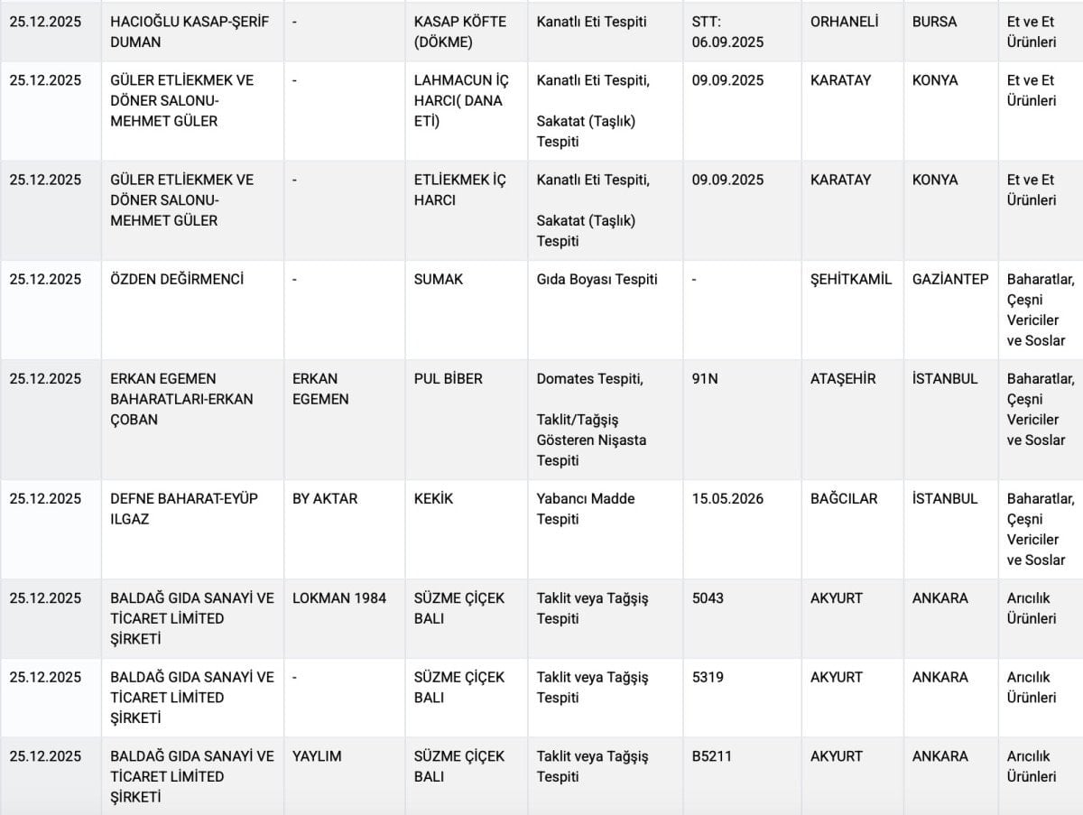 Gıda güvenliğine yönelik denetimlerini sürdüren Tarım ve Orman Bakanlığı, 25 Aralık tarihinde güncellediği taklit ve tağşiş yapılan ürünler listesini kamuoyuyla paylaştı.
