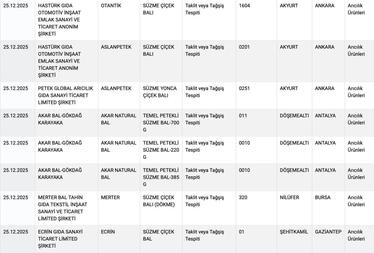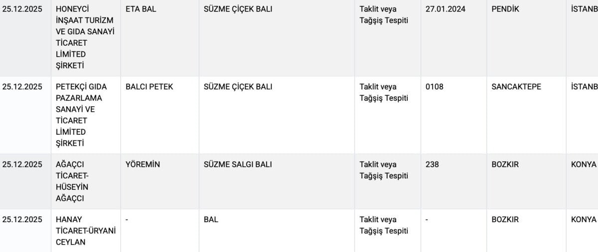 - Bal, pekmez, yoğurt ve baharat gibi sık tüketilen gıdalarda hileli uygulamalar tespit edildi.