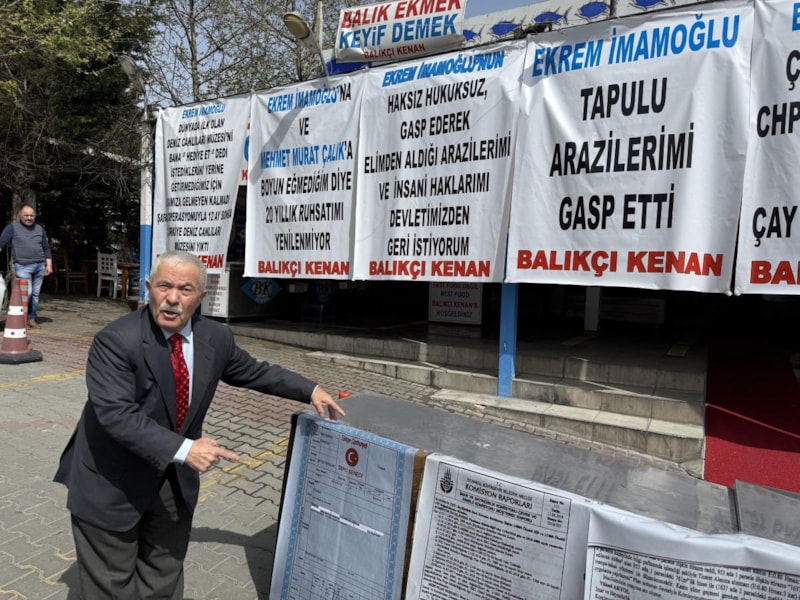 Balcı, İmamoğlu’nun yolsuzluk soruşturması kapsamında tutuklanmasının ardından kendisinin de rızası dışında alınan arsalarıyla ve iş yerinde çiğ balık satışı yapılamaz durumuyla ilgili şikayette bulundu. Konuyla ilgili ifade veren Balcı, iş yerine astığı afişlerle hakkını geri istediğini söyledi.