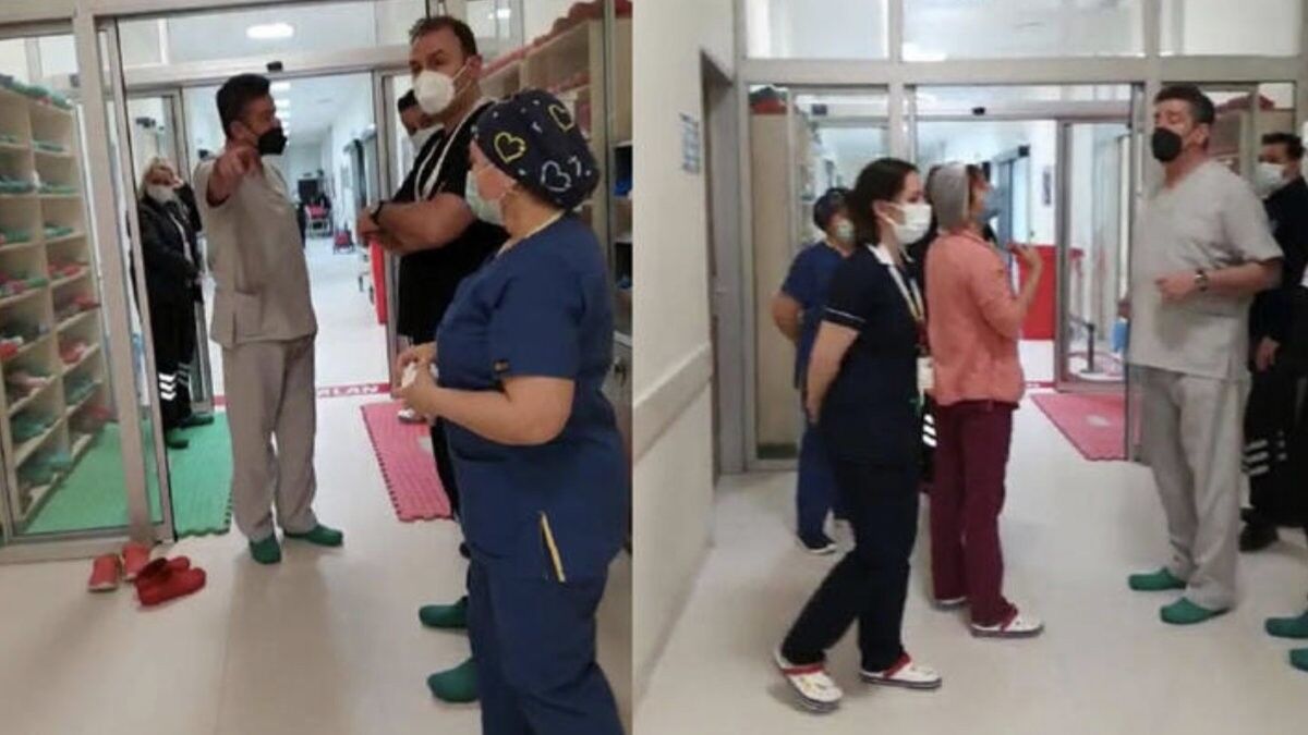 Twitter'a da yansıyan görüntülerde Başhekim Şenveli'nin hastanedeki güvenlik görevlilerine hitaben görüntüleri çeken doktoru kastederek, "Şunu da hemen paketleyin, hemen alın hemen" sözleri tepki topladı.