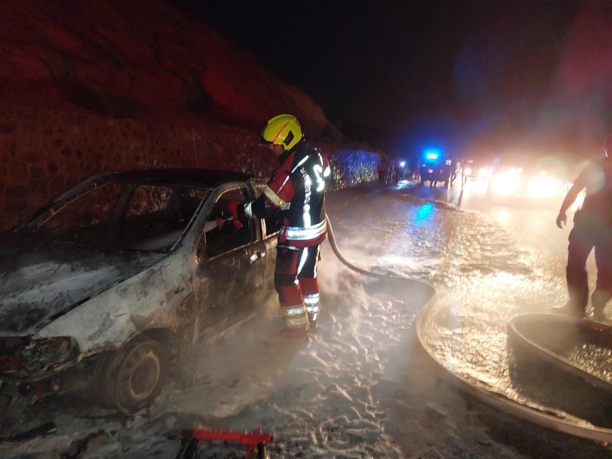 Balıkesir'in Edremit ilçesinde Hacıarslanlar Mahallesi'ni yaklaşık 3 kilometre geçtikten sonra Kazdağları'nda Kalkım yolu üzerinde 17 AFG 443 plakalı araç henüz bilinmeyen bir nedenle alev aldı.