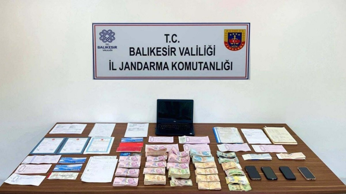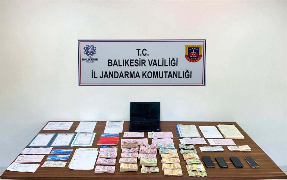 Bigadiç Cumhuriyet Başsavcılığı talimatıyla Balıkesir İl Jandarma Komutanlığı ekipleri, belirlenen 8 adrese eş zamanlı operasyon düzenledi. Yapılan aramalarda 60 senet, 8 çek defteri, 1 tapu senedi, 3 araç satış sözleşmesi, 5 tahsilat makbuzu, 1 bilgisayar, 4 cep telefonu, 2 ajanda, 167 bin TL, 2 bin 100 euro ve 980 dolar ele geçirildi.
