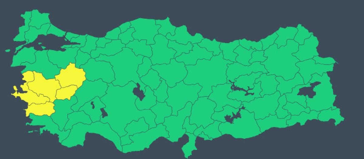 Meteoroloji tarafından Aydın, İzmir, Kütahya, Manisa, Uşak için sarı kodlu uyarı yapıldı.