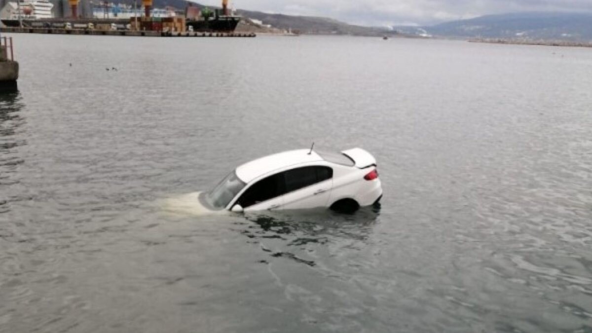 Hareket ettirdiği otomobille denize düşen sürücü Engin Y, camını açarak sudan çıktı.