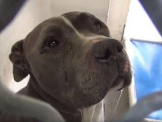 Blue King adlı tatlı pit bull Kaliforniya'da ölüm oranı yüksek olan bir barınağa bırakıldı.
