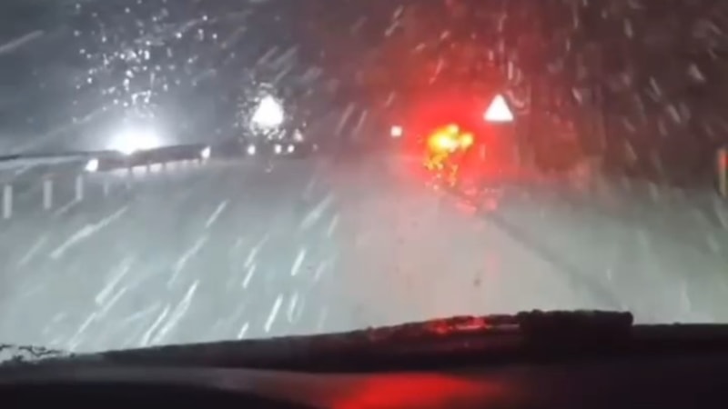 Karayolunun bazı bölgelerinde lapa lapa kar yağarken, bazı kısımlarında ise sulu kar yağdığı görüldü.
