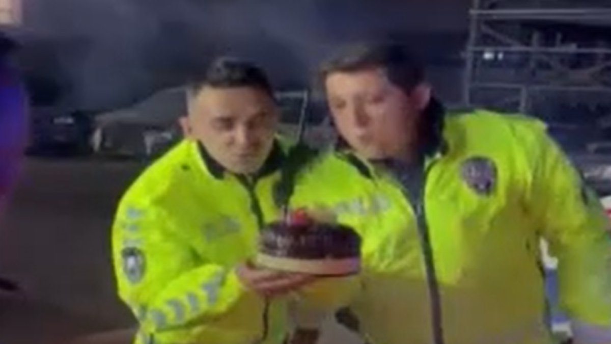 KAZA İHBARINA GİDEN POLİSLERE PASTA İKRAM EDİLDİ