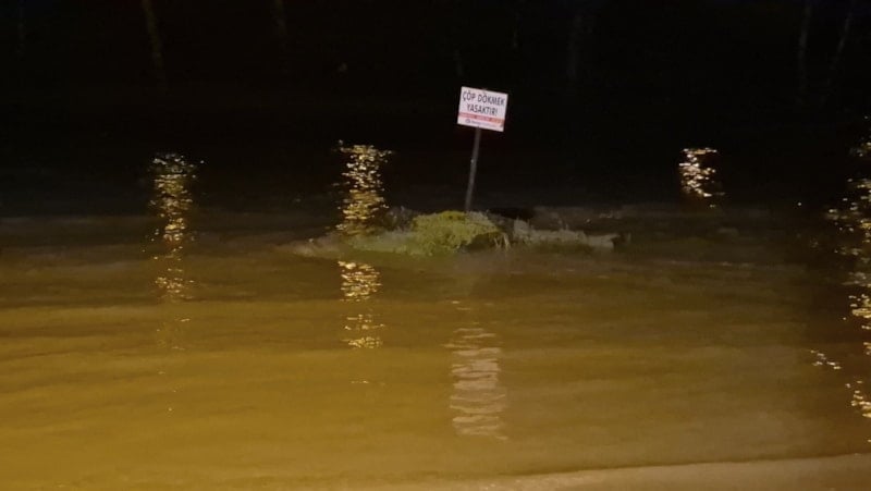 Çağlayan piknik alanının önündeki asfalt yol, ağaçlar, çöp kutuları ile teknelerin bağlandığı iskeleler su altında kaldı.