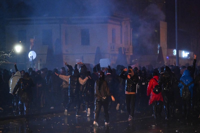 Polis ekipleri, megafonla gruba dağılmaları için uyarılar yaptı. Yetkililer, protestocular arasında "provokatörlerin" olduğunu, polise taş ve şişe atıldığını belirtti.
