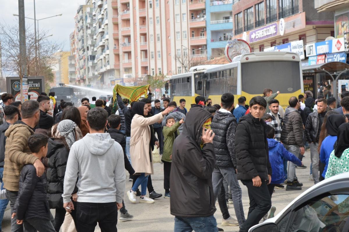 Alana gelenler, müzikler eşliğinde halay çekerek nevruzu kutladı. HDP Sözcüsü ve Mardin Milletvekili Ebru Günay’ın da konuşma yaptığı kutlamanın ardından dağılan kalabalık içerisinde bulunan bir grup, terör örgütü PKK elebaşı Abdullah Öcalan lehine sloganlar atınca, polis tazyikli su ve biber gazıyla müdahale etti.