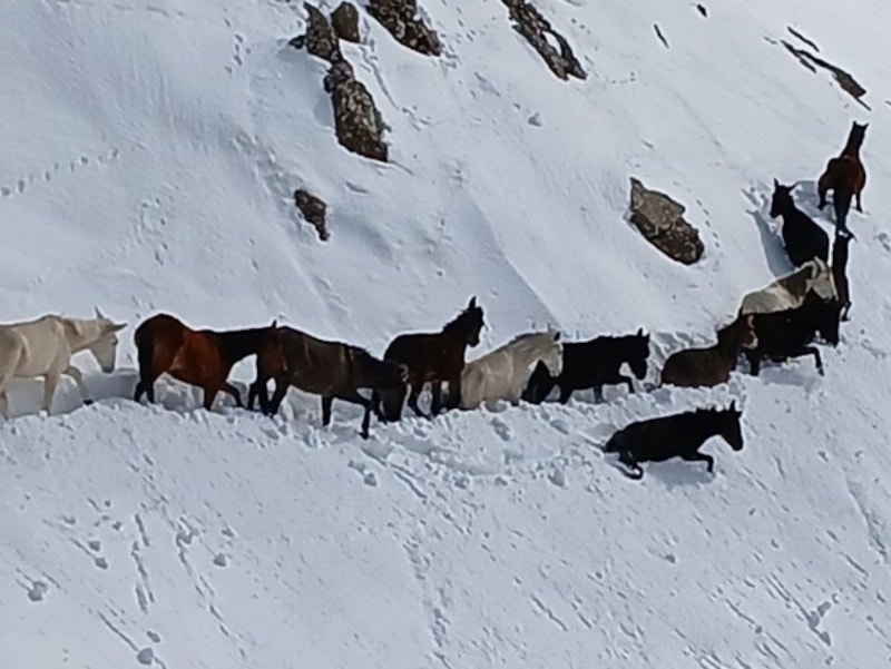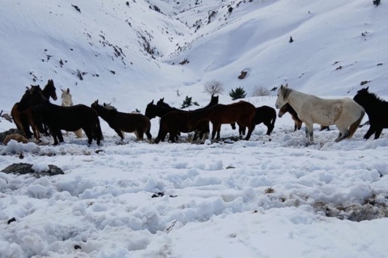 Batman’ın Sason ilçesinde son günlerde artan kar yağışının ardından dağlık alanda bulunan yaklaşık 30 katır, kar kalınlığının artması nedeniyle bulundukları bölgeden köylere inemedi. Karla kaplanan arazide ilerlemekte zorlanan hayvanlar, uzun süre mahsur kaldı.