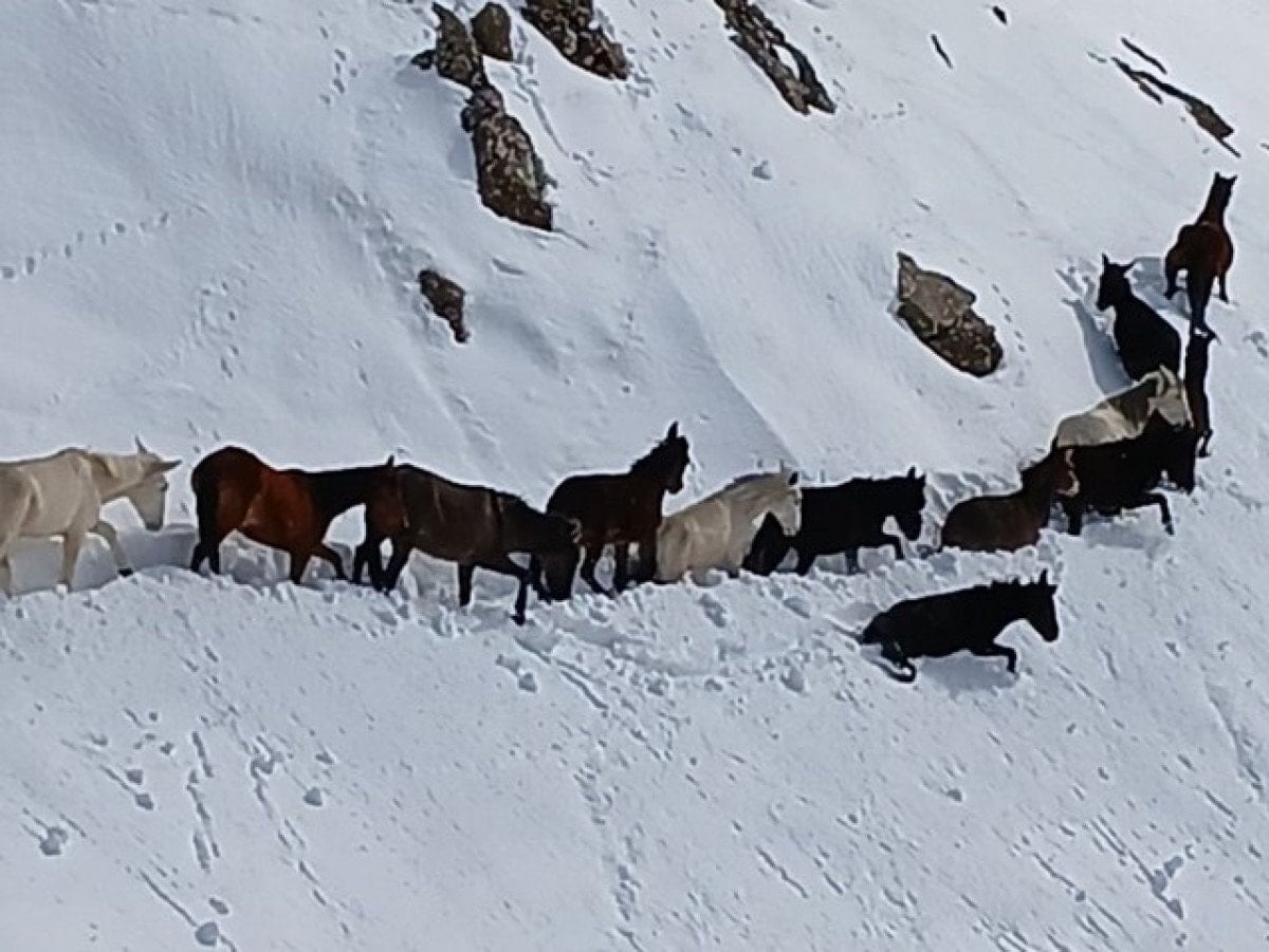 - Batman Sason'da artan kar yağışı nedeniyle dağlık alanda mahsur kalan 30 katır, güvenlik korucuları tarafından fark edildi.