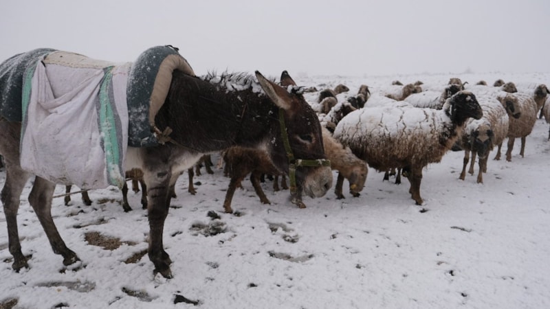 Sürü, kar altında kaldı.