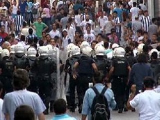 Bu sırada İstiklal Caddesi'nden geçmekte olan Kasımpaşalı taraftar ile BDP'li grup arasında gerginlik yaşandı. Polis, Kasımpaşaspor taraftarlarını biber gazı sıkarak dağıttı.