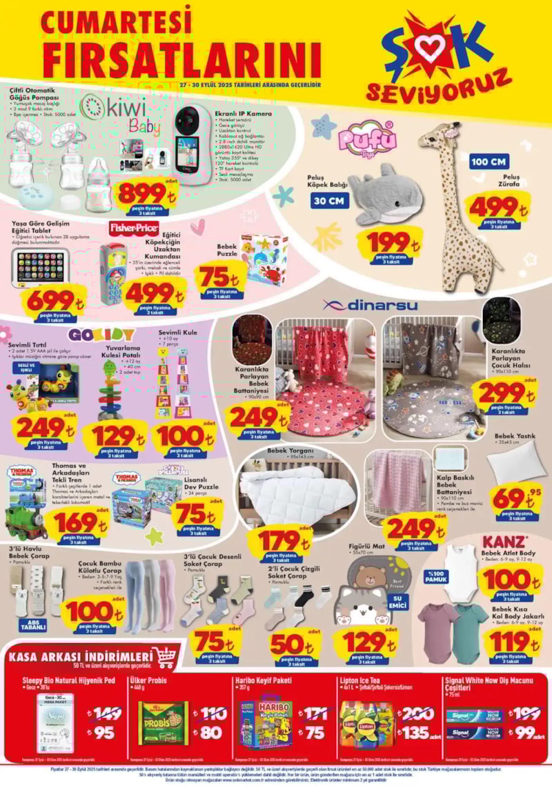 ŞOK market, 27-30 Eylül tarihlerinde geçerli olacak yeni aktüel ürünler kataloğunu duyurdu. Bu haftanın dikkat çeken ürünleri arasında ekranlı IP kamera, peluş oyuncaklar, çeşitli bebek ürünleri ve evcil hayvan malzemeleri bulunuyor.