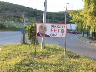 Ferizli'de, terör örgütü FETÖ'nün elebaşı Fetullah Gülen'in fotoğrafının bulunduğu 'Dikkat FETO çıkabilir' yazılı, trafik canavarını gösteren levhalar konuldu. Ferizli Belediyesi tarafından yol ayrımlarına ve belli yerlere konulan levhalar, dikkat çekti. Ferizli Belediye Başkanı Ahmet Soğuk, levhaların belediye tarafından konulduğunu, kazaların sık yaşandığı yerlere yerleştirildiğini belirtti.