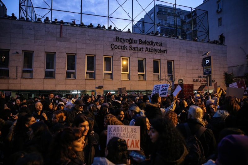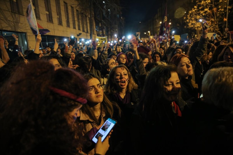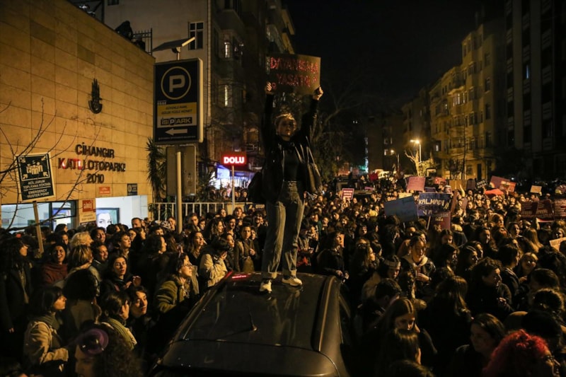 İstanbul'un Beyoğlu ilçesi Cihangir Mahallesi'ndeki bazı sokak ve kavşaklarda 8 Mart Dünya Kadınlar Günü dolayısıyla izinsiz olarak toplanan gruplar slogan attı.