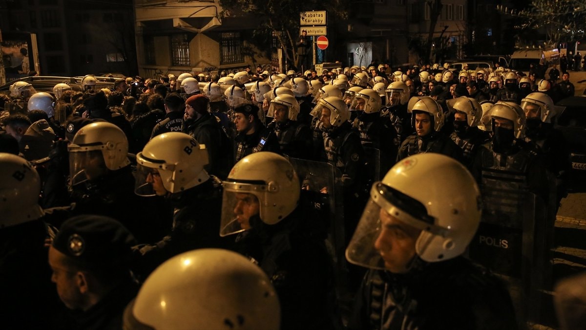 Cihangir Spor Salonu önündeki kalabalık basın açıklamasının ardından dağılırken bir grup polis barikatına saldırdı.
