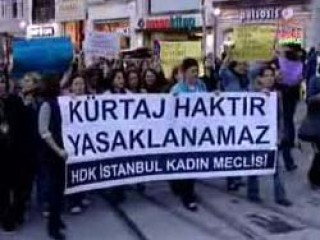 Galatasaray Meydanı'nda toplanan Halkların Demokratik Kongresi İstanbul Kadın Meclisi üyesi yaklaşık 50 kişi "Kürtaj haktır,yasaklanamaz" pankartı açtı. Grup, "Tayyip beynini bedenimizden çek" dövizleri taşıyarak, "Başbakan sabrımızı taşırma" sloganları attı.