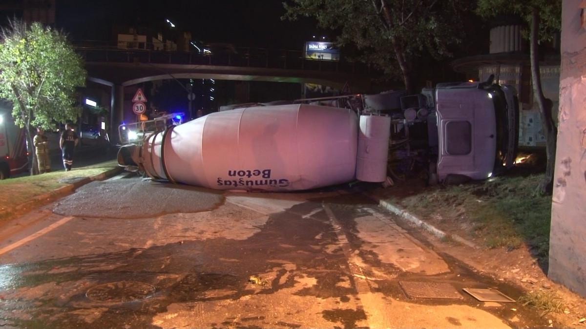 Sağa sola yalpalayan beton mikseri virajı alamayınca yan yattı. İhbar üzerine olay yerine polis, itfaiye ve sağlık ekipleri sevk edildi.