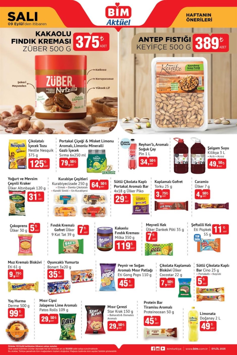 BİM market, 9 Eylül 2025 Salı gününden itibaren geçerli olacak aktüel ürünler kataloğunu yayınladı. Marketin yeni kampanyasında gıdada cazip indirimler yer alıyor.