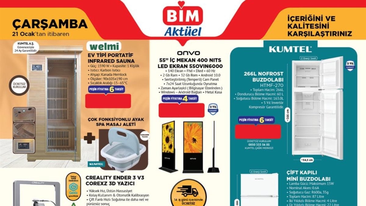 - BİM, 21 Ocak'ta portatif sauna ve çok çeşitli ürünleri indirimli fiyatlarla satışa sunacak.