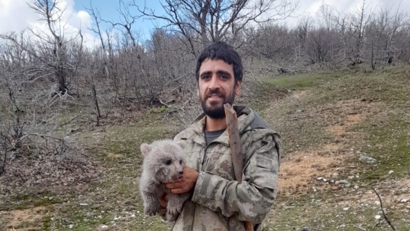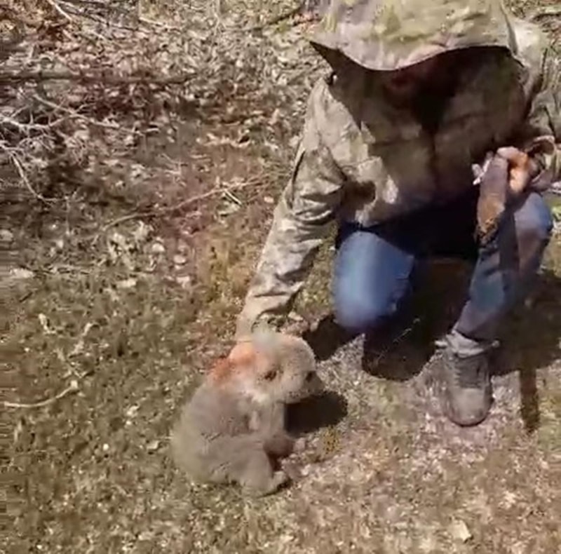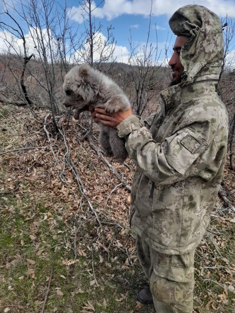 Genç ilçesinde 2 çoban, köpeklerin saldırısından kurtardıkları ayı yavrusunu, doğal yaşam ortamına bıraktı.