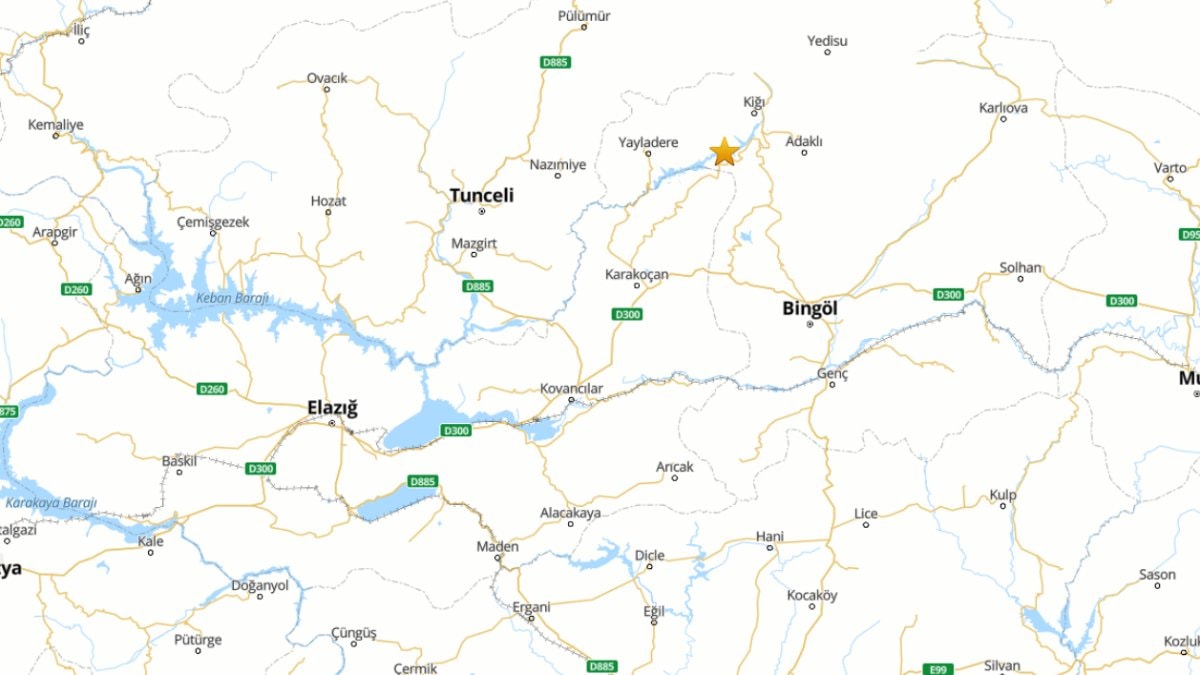 Merkez üssü Kiğı ilçesi olan depremin şiddeti 3.9 olarak açıklandı..
