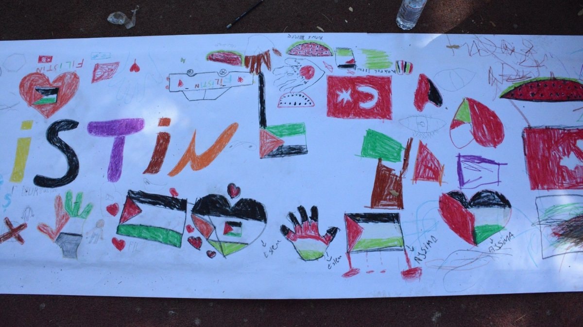 Öğrencilerden Ravza Demir, "Filistinli kardeşlerimiz için çiz etkinliğine geldik. Desteğimiz hep onlarla. Rabbimiz onların her zaman yardımcısı olsun. Hepsini çok seviyoruz” diye konuştu.