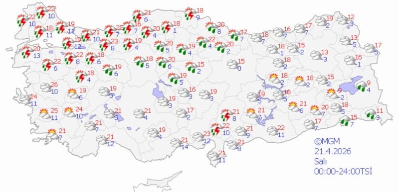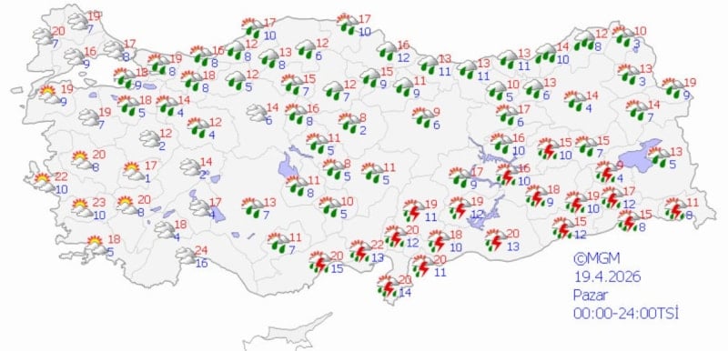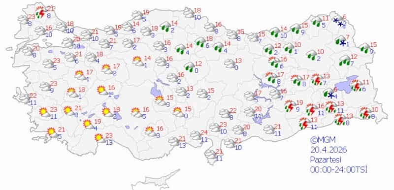 Türkiye genelinde Meteoroloji Genel Müdürlüğü'nün (MGM) son verilerine göre, ülke genelinde değişken hava koşulları hakim olacak.