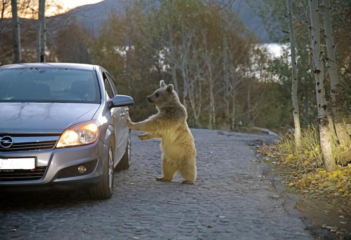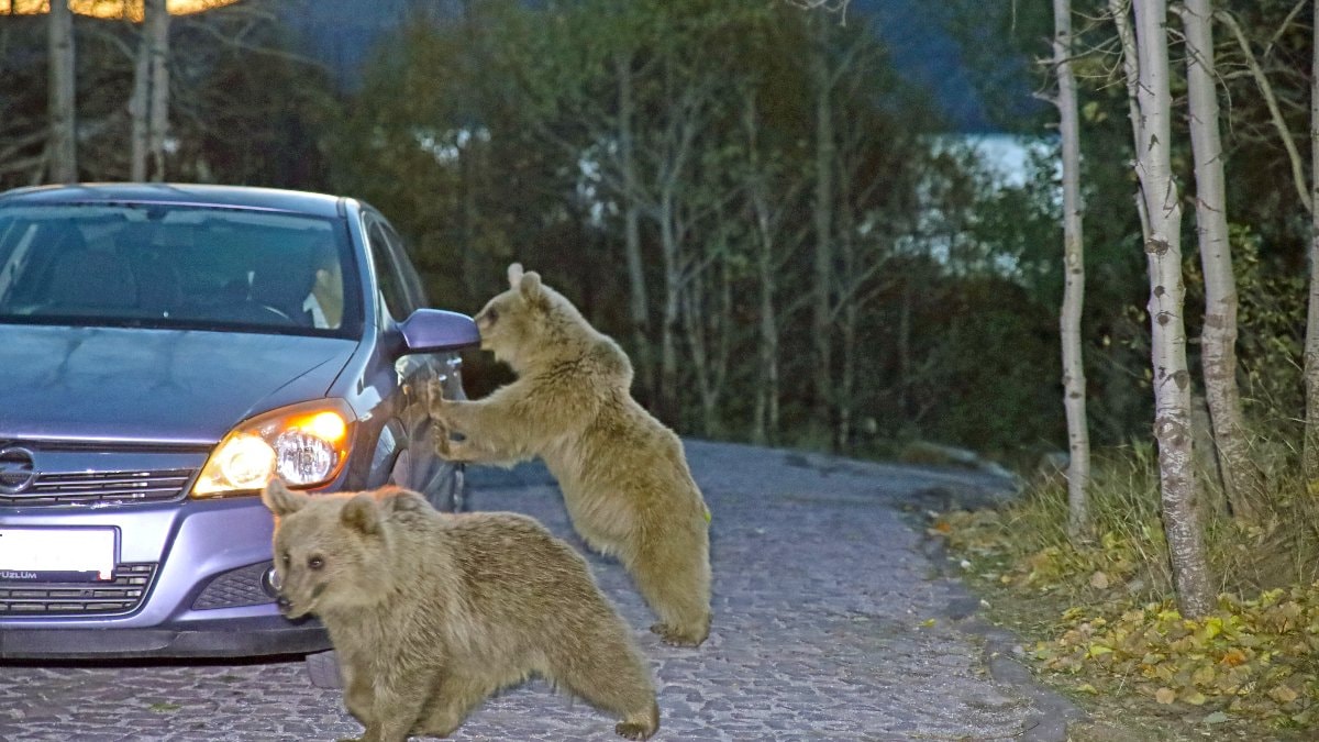 Araçlarıyla bölgeye gelenler, ayılara yiyecek veriyor. Ancak bu yiyeceklerle doymayan ayıların, bu kez de araçların camlarına, kapılarına kadar saldırmaya başladığı belirtiliyor.