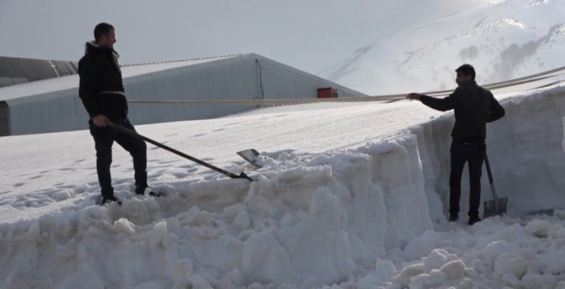 Türkiye’nin en çok kar alan illerinden Bitlis’te, kent genelinde çatıların çökme riskine karşı temizlik çalışmaları hız kazandı. Vatandaşlar ve esnaf, metrelerce kalınlıktaki karı temizlemek için seferber oldu.