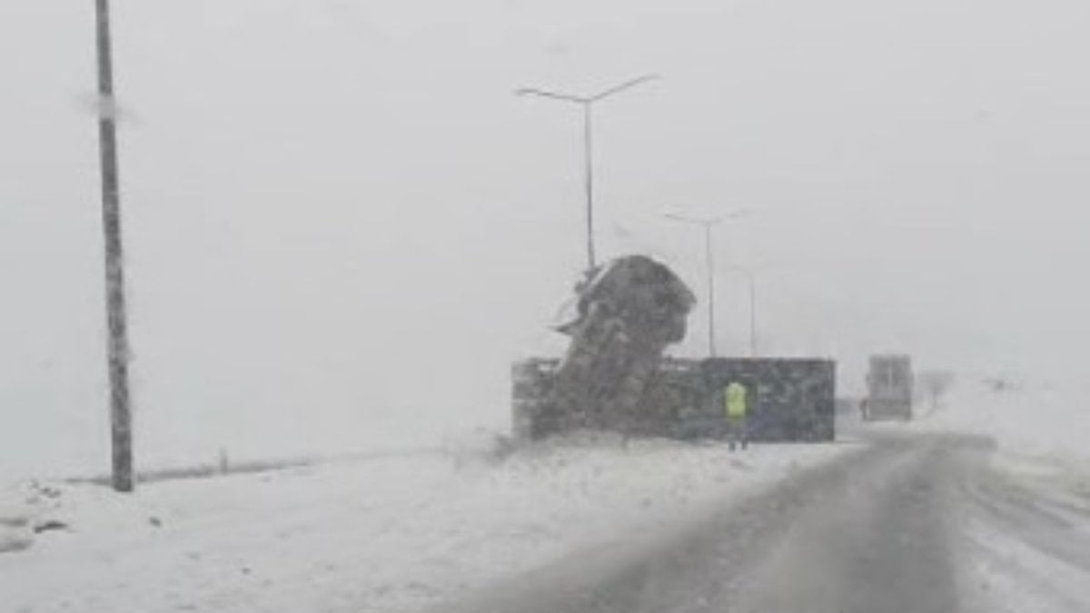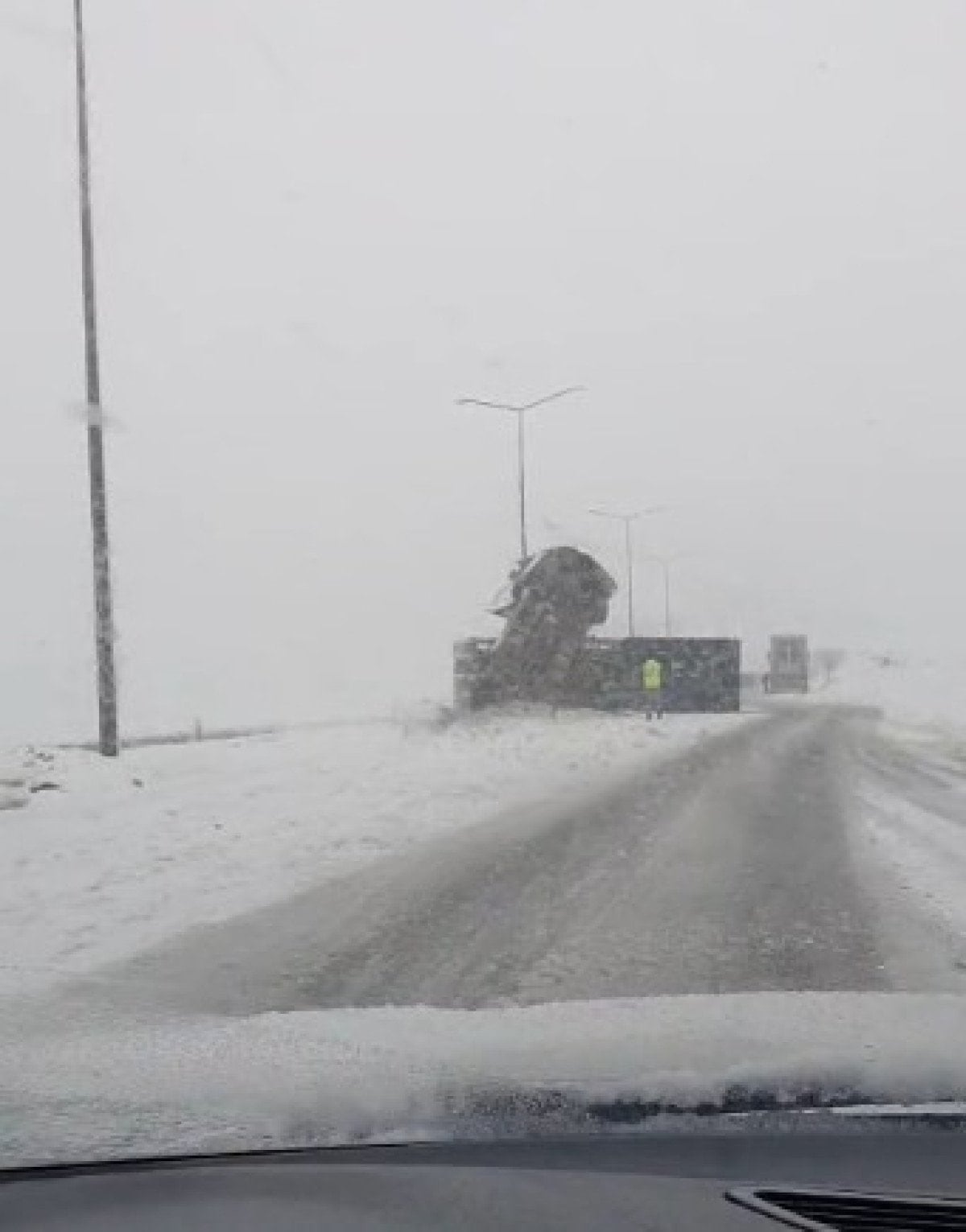 - Bitlis-Tatvan kara yolunda kontrolden çıkan tır, olumsuz hava şartları nedeniyle yan yattı.